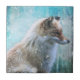 Tuile en céramique avec photo d'un mignon renard debout seul. Placez-vous sur un arrière - plan de grunge bleu.