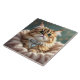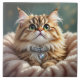 Un adorable carreau avec une adorable illustration d'un beau chat tabby moelleux portant un collier en diamant avec un arrière - plan turquoise.