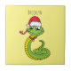 Carreau Cute serpent vert avec chapeau santa dessin animé