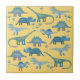 Lots de dinosaures bleus, tyrannosaure rex, spinosaure, stegosaure, diplodocus et tricératops sur a yellow background Parfait pour paleontologistes.