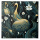 Ce carrelage en céramique présente un design de cygnes d'or dans un champ avec des fleurs blanches et des feuilles. Les couleurs du gris foncé et de l'émeraude claire créent un contraste frappant. Le design est influencé par l'art chinois ancien, avec des illustrations fantaisistes et des lignes fluides. Le motif est transparent et reproductible, ce qui le rend parfait pour créer un design continu sur un mur ou un plancher.