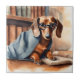 Carreau Dachshund vintage dans l'ancienne bibliothèque