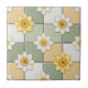Soft pastel tile pattern ceramic tile featuring daffodil-inspired florals with a subtle embossed look. Muted green, warm cream, and sunny yellow tones create an elegant spring aesthetic. Ideal for floral pattern lovers, home décor enthusiasts, and cottagecore fans. A thoughtful gift for gardeners, nature lovers, and anyone who enjoys calm, botanical designs, especially for spring décor, Easter season, and everyday elegance.