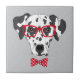 Caractéristiques de conception ce qu'un portrait tiré par la main de Dalmate s'est habillées dans les verres et la cravate d'arc rouges de conception de coeur.