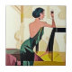 Carrelage en céramique dans une élégante dame Art Déco / jazz en vert jade, tenant un verre, dans un style art moderne semi-abstrait