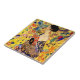 Carrelage représentant la peinture à l’huile de Gustav Klimt Lady with Fan (1918). Une femme portant un kimono bleu tient un ventilateur rouge contre un arrière - plan jaune coloré de fleurs et de paons. Un grand cadeau pour les amateurs de Japonisme et d'art européen.