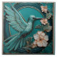 Carreau Dark teal faux relief Art Nouveau Hummingbird R