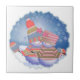 Carreau de céramique ou trépied avec casquettes, chandails et mitaines de port d'hiver de bonhomme de neige et de femme de neige. Fait une addition gentille à votre décor ou table de vacances.