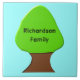 Cette tuile impressionnante présente une image numérique amusante d'un arbre avec un haut vert et un tronc marron sur un arrière - plan bleu ciel. Il y a du texte personnalisable sur l'arbre vous permettant de taper votre nom de famille pour personnaliser cette jolie mosaïque.