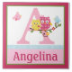 En vente, cette adorable carreaux de céramique vibrante, conçue sur le thème "Happy Tree Owls". Utilisez pour décorer la chambre de votre enfant. Vous pouvez également afficher sur un petit chevalet (chevalet non inclus). Utilisez les modèles de texte pour modifier le nom et la lettre. Vous pouvez également vous déplacer autour des images à votre goût.