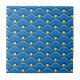 Carreaux en céramique dans un motif à crampons ou à vagues chinois, traditionnel dans le travail du textile et de l'émail, dans l'océan / bleu céramique, turquoise, indigo foncé, et un accent beurre clair jaune