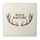Un carrelage en céramique avec une illustration de bois de cerf marron et un texte entièrement personnalisable : "Wild Nature" dans le style rustique sur un arrière - plan beige clair ! Ajoutez une touche de nature sauvage à votre décor maison!
