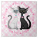 Deux chats mignons (siamois) un noir, un blanc et gris sur un arrière - plan rose dans un cercle de coeurs et d'amour. de Ricaso cu delightful-doodles.com