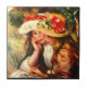 Carreau Deux filles de lecture dans un jardin par Pierre