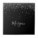 Personalize your name in white script (or message) with white diamonds falling from above on Black background.