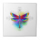 Lumineux, arc-en-ciel, libellule polygonale sur arrière - plan blanc, peint avec aquarelle.
