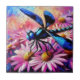 Carreau Dragonfly impressionniste sur les marguerites rose