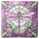 Carreau Dragonfly Magenta Rose and White Staned Glass
