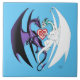 Un dragon violet et un dragon blanc en l'air avec un coeur rouge celte et rose entre eux dans un décor bleu.