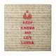 Drôle humour sur le slogan populaire "garder son calme" avec un thème bouddhiste. "Keep Karma and Live Longa" texte rouge sur une illustration d'un livre de bouddha vintage antique sur un arrière - plan vintage en papier.
