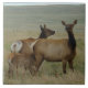 Carreau de vache élan et veau. Lorsque les vaches élans se sentent menacées, elles entoureront les jeunes élans comme le font ces deux vaches, à ce stade s'approcher plus près serait imprudent. Les élans sont de gros animaux et vont charger s'ils se sentent trop près de vous.