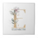 Lettre E monogramme floral. Lettre E en texture brun doré accentué de feuilles verts composés d'aquarelle, fleurs de fleurs et poussière d'or. Personnalisé avec nom dans la police correspondante.