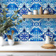 Grande échelle Méditerranée azul bleu aquarelle tuile, utiliser pour créer de gros tuiles motif