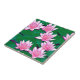 Carrelage en céramique dans un motif de nénuphars dans les tons doux rose, et caleçons vert émeraude, flottant sur un étang