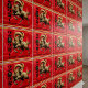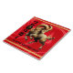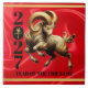 Élevez vos expériences de divertissement et de restauration pour le Nouvel An lunaire 2027 avec ce carreau de célébration, qui présente la Chèvre de Feu dansant sur un fond de soie rouge luxueuse fausse bordée de feuille d'or fausse, plus le caractère chinois pour la Chèvre/Brebis/Bélier rendu en feuille d'or fausse, se tenant à la place du zéro dans 2027.