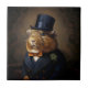L'image sur ce carrelage présente un cobaye vêtu d'une tenue édouardienne traditionnelle. Le cobaye est orné d'un chapeau noir et d'un manteau foncé sur mesure avec un revers, accentué par une boutonnière. Sous le manteau, il semble porter une chemise complétée par une cravate arc de couleur claire. Le sujet est posé sur un fond marron texturé qui imite le style de la photographie de portrait classique du début du XXe siècle, invoquant la mode et le style de portrait formel de l'ère édouardienne.