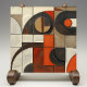 "Elégance géométrique" est une céramique sophistiquée qui célèbre l'esthétique audacieuse de la géométrie abstraite. Cette pièce de style mosaïque est une collection de tuiles, chacune présentant un segment unique de cercles et d'arcs dans un agencement harmonieux. La palette de couleurs est un assortiment de riche espresso, d'ivoire crémeux et de sienne profonde, complété par des accents frappants d'orange brûlée. La texture de surface est un mélange méticuleux de glaçures lisses et de finitions de craquelures complexes, donnant à la pièce un aspect vieilli mais intemporel. Sa composition en forme de grille suggère ordre et précision, tandis que les tailles et la juxtaposition variées des formes introduisent un élément de jouabilité. Ce carrelage en céramique est un hommage à l'amour moderne du milieu du siècle pour la forme et la fonction, ce qui en fait un élément décoratif idéal pour tout intérieur contemporain ou d'inspiration rétro.