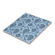 Seamless floral pattern on a light blue background, featuring dark blue, intricate flowers and swirling vines, creating an elegant and classic feel.