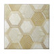 A seamless geometric pattern ceramic tile featuring a refined grid of hexagonal shapes outlined in metallic gold. Each hexagon contains intricate designs such as parallel lines, cross-hatching, and abstract geometric motifs. The background blends soft cream and beige tones with a subtle marble-like texture, creating a sophisticated, luxurious aesthetic.
