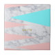 Design tendance et moderne avec des triangles géométriques de couleur rose et menthe et un faux marbre blanc.