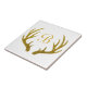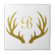Carrelage en céramique de glam rustique élégant avec une fausse parties scintillant d'or imprimé bois de cerf silhouette et lettre monogramme.