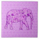 Graphisme numérique à motif mixte d'un éléphant richement orné sur un fond à carreaux arabesques - nuances de lavande, d'orchidée et de violet améthyste