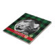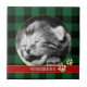 Boison vert rustique et noir plaid motif photo personnalisée Carrelage en céramique avec décor festif de chaton bébé mignon pour les amateurs de chats.