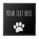 Empreinte de patte de chien de dessin en blanc avec arrière - plan noir. Version carré pointillée. Carreaux en céramique avec texte personnalisé. Idée cadeau pour les amoureux de les chiens.
