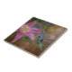 Ce carreau en céramique représente un colibri recueillant le nectar d'une fleur de clématite rose.