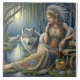 Sous la lumière tranquille de la lune, une femme sereine se repose au bord d'un ruisseau forestier, son élégante posture exubérant la contemplation. Ornée d'une coiffure ornée et d'une finition qui fait écho aux motifs complexes des forêts, elle partage une communion silencieuse avec un loup gris majestueux. Dans l'arrière - plan, les ombres des loups se mêlent aux arbres couverts de crépuscule, créant une fusion harmonieuse de l'esprit sauvage et de la révérence paisible.