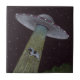 Un dessin au crayon couleur d'une vache malheureuse enlevée par des aliens dans une soucoupe volante, une nuit sombre et étoilée. Le troupeau effrayé s'agite dans l'arrière - plan.