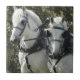 Un beau portrait de deux percherons gris qui semblent blancs comme neige.