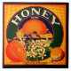 Vintage, fleur d'oranger, publicité de société de miel. Il présente des oranges, des fleurs d'oranges et dit "Miel". Dans des couleurs vives et chaudes, orange, vert, blanc et noir.