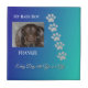 This ceramic tile design offers a modern, faith‑inspired tribute to the love shared with your pet. Their photo is placed at the center left, with nickname above and name below in elegant Playfair Display font. Five silver pawprints trail upward along the right side, while the phrase “Every day with you is a gift” glows at the bottom in flowing Great Vibes script with a subtle black drop shadow. Set against a blue‑teal gradient background, this chic keepsake blends spiritual meaning with minimalist style, creating a heartfelt accent for pet parents and families.