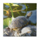Une tortue exposant au soleil sur une roche