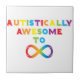 Design fait avec amour pour la Sensibilisation sur l'autisme. Les lettres arc-en-ciel forment l'expression "Autistiquement Awesome To Infinity" avec un symbole infinity.