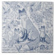 Un renard-mère et deux kits profitent d'un cadre boisé avec des fleurs stylisées et des feuilles - et un peu d'escargot - sur ce carrelage décoratif fantaisiste en bleu denim et gris clair. Une adaptation d'un de mes motifs de tuiles bleues et blanches populaires. OEuvre et design uniques et originaux de Tuzi Williams.