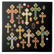 Ajoutez une touche de bling chrétien à votre décor de maison avec un carrelage en céramique décoré de croix d'or bouclés en imitation pierre colorée et de perles amples et démontées sur un arrière - plan noir ! + NOTE : Tous les éléments de cet élément sont plats, 2 dimensions et IMPRIMÉS ! Aucun gemme ou métal n'est utilisé dans sa production. + WYSIWYG + Crédits d'images : Les pierres précieuses ont été extraites de deux anciennes séries de cartes postales : 1) la série Lucky Horseshoe Birthstone, initialement publiée par Adelbert Kohn, Philadelphie, Pennsylvanie, 1907 ; et 2) la série Gem Birthday ("star"), initialement publiée par l'Art Manufacturing Company, Amelia, Ohio, 1908-1915. Les deux séries de cartes postales proviennent de la collection privée du concepteur. + Les perles sont clipart licencié du pack Shiny Pearl 2 par Lary Cao.