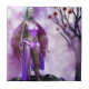 "Fée en fleur de crépuscule" Ce personnage éthérée présente un guerrier mystique de fée au milieu d'un paysage surréaliste et rêveur. Elle est décorée dans un ensemble violet et rose vif qui fusionne élégance et force, avec des ailes translucides et des accessoires d'inspiration nature. Son entourage comprend un arbre stérile d'une beauté effroyable, aux fleurs rouge-noir fleuries, baigné de brume violette sous une pleine lune, ce qui renforce l'ambiance magique et crépusculaire.