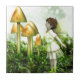 Une curieuse jeune fée examine un groupe de tabourets jaunes sur une banque de mousse dans cette oeuvre d'imaginaire originale, créée en DAZ 3D par l'artiste Jayne Wilson.